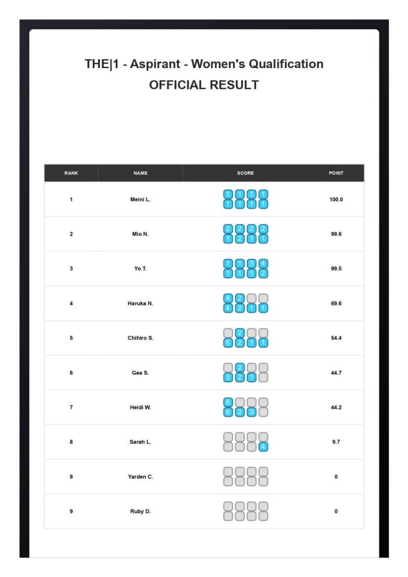 【THE|1 DAY1 ASPIRANT】Result – Women’s Qualification