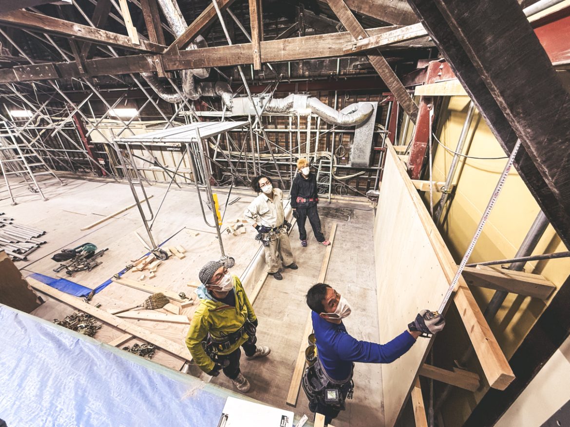 (今回もPUMP各店の壁工事を手掛けるストーンマスターズ職人集団によって壁を作っていただきました。)