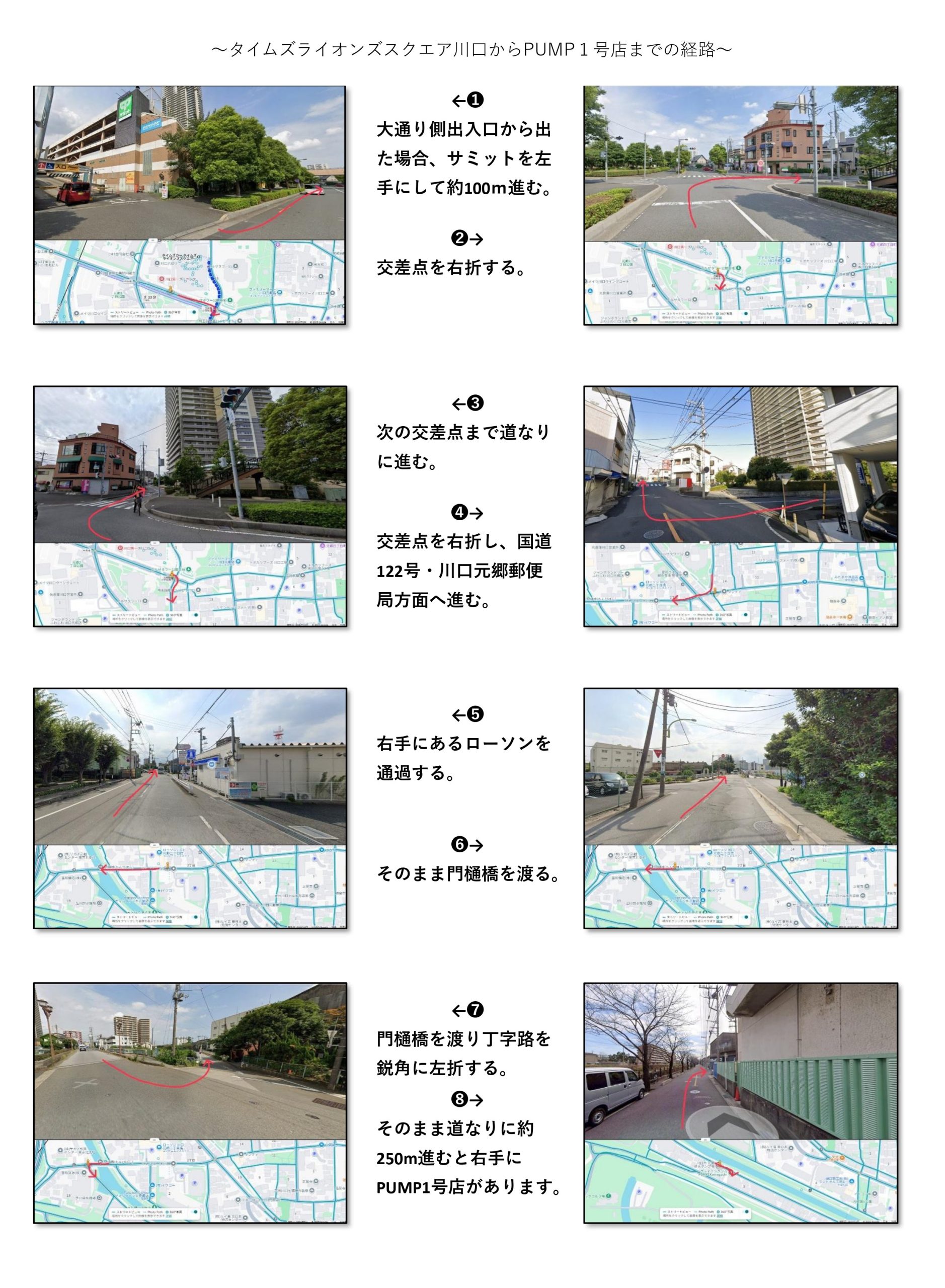 また、コインパーキングからPUMP1号店までの経路は以下の画像を参照ください。