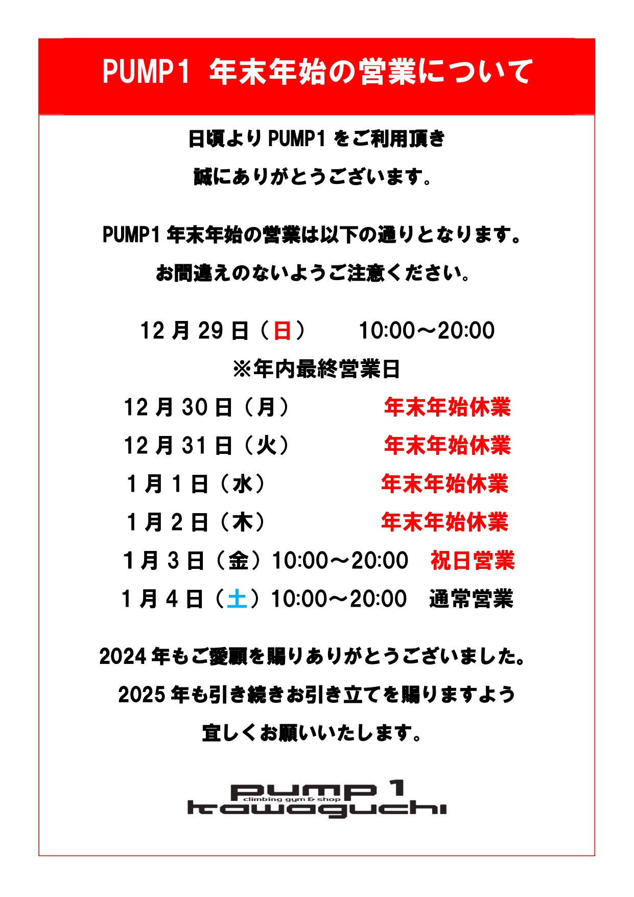 冬休みの遠征先や登り納め、登り始めは是非PUMP1で!!