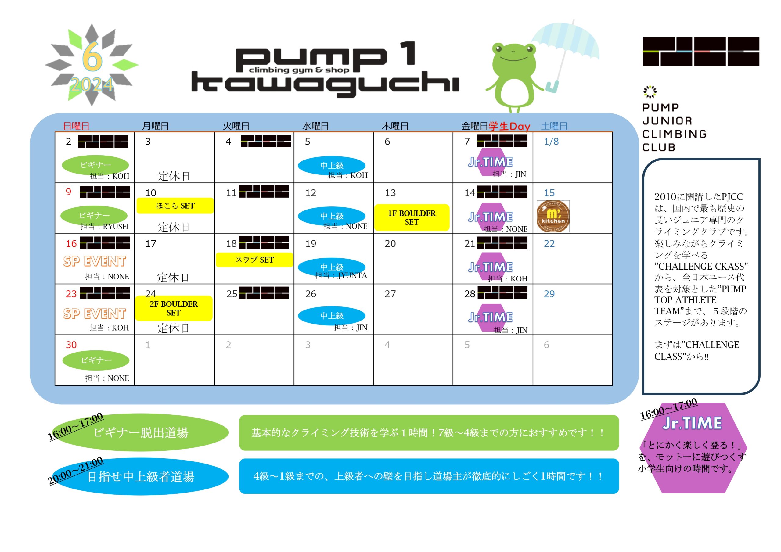 ・・・18:00〜スペシャルイベントに伴う作業の為、トップロープエリアcloseとなります。