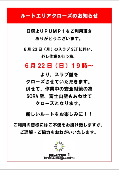 SETに伴い、SORA・富士山壁もクローズにさせて頂きます。