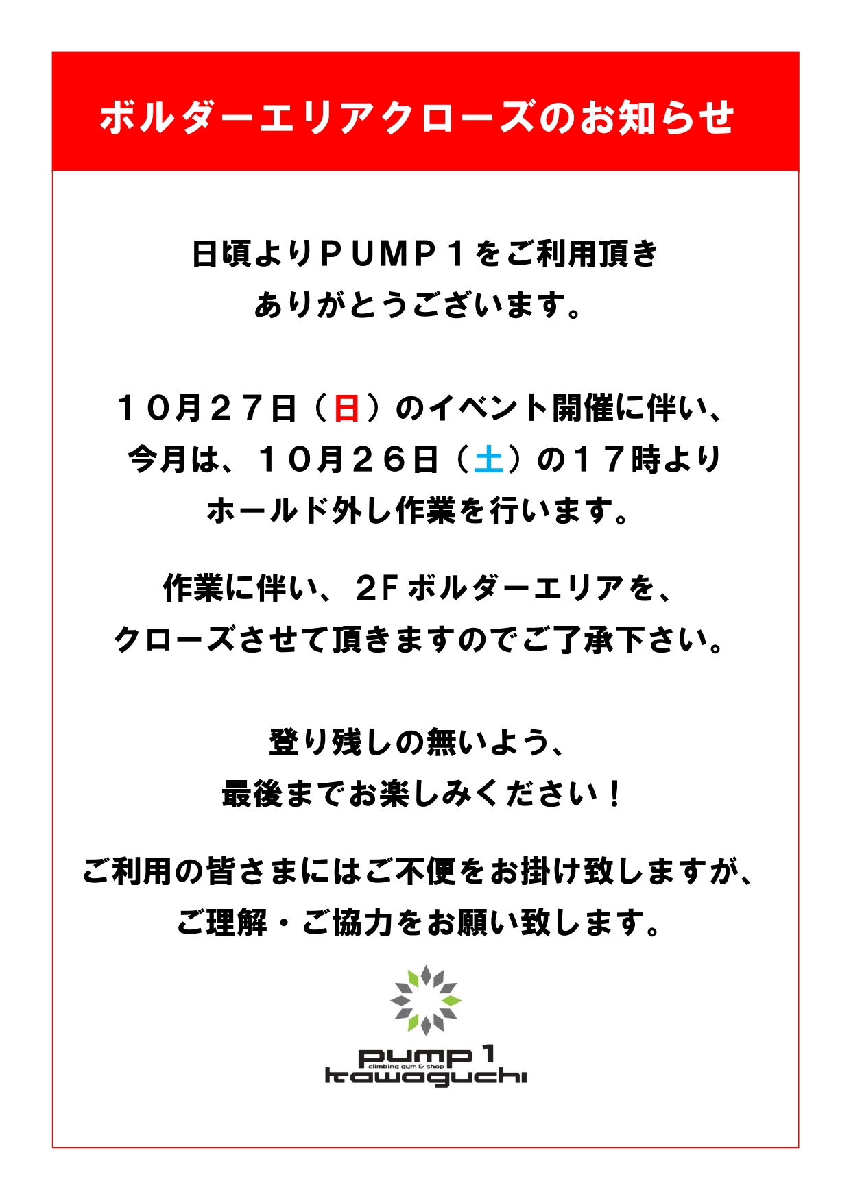 27日(日)スタッフ名取のラストイベントもお楽しみに!