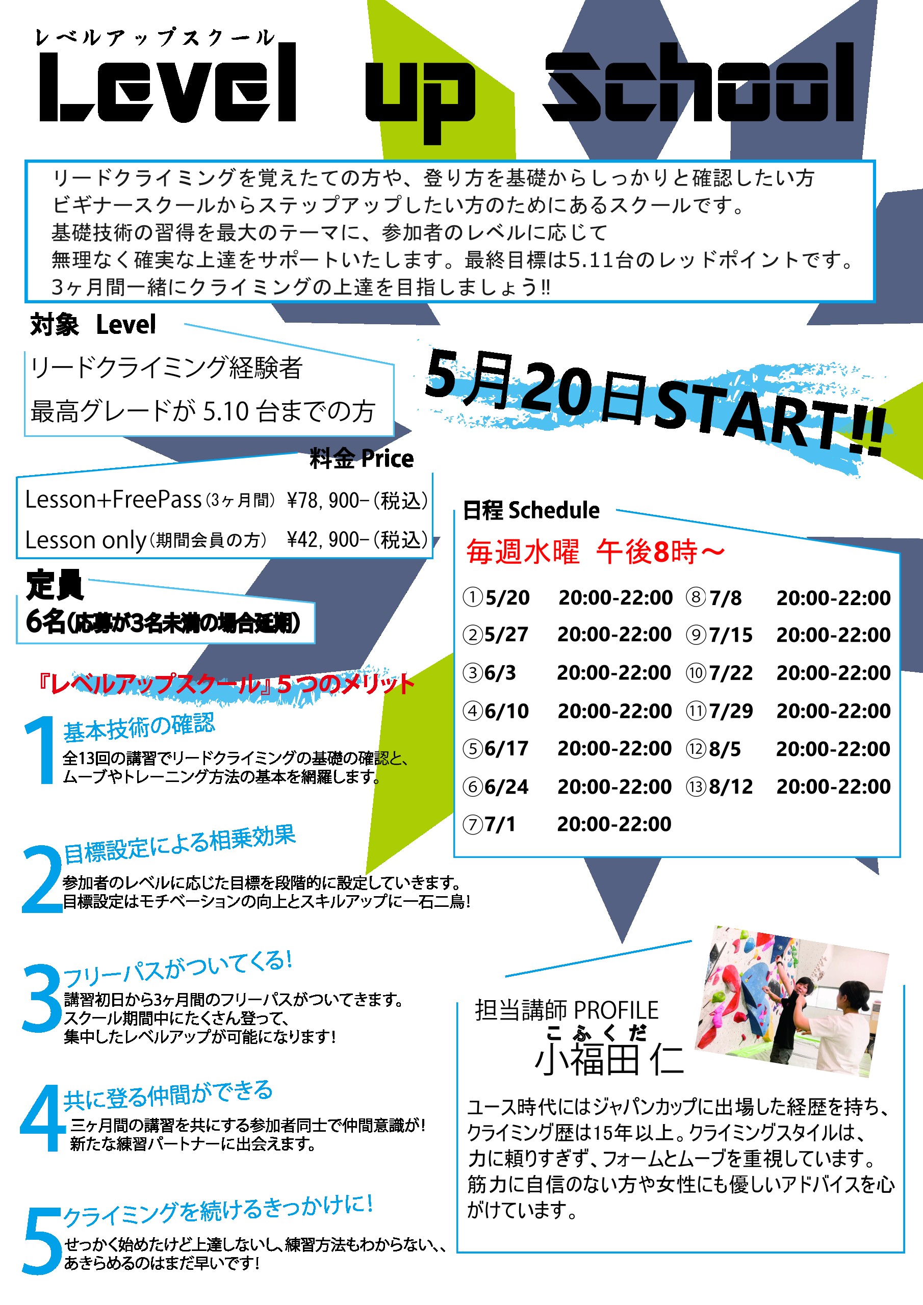 5月20日(水)スタートレベルアップスクール(”夜”クラス)募集中!!