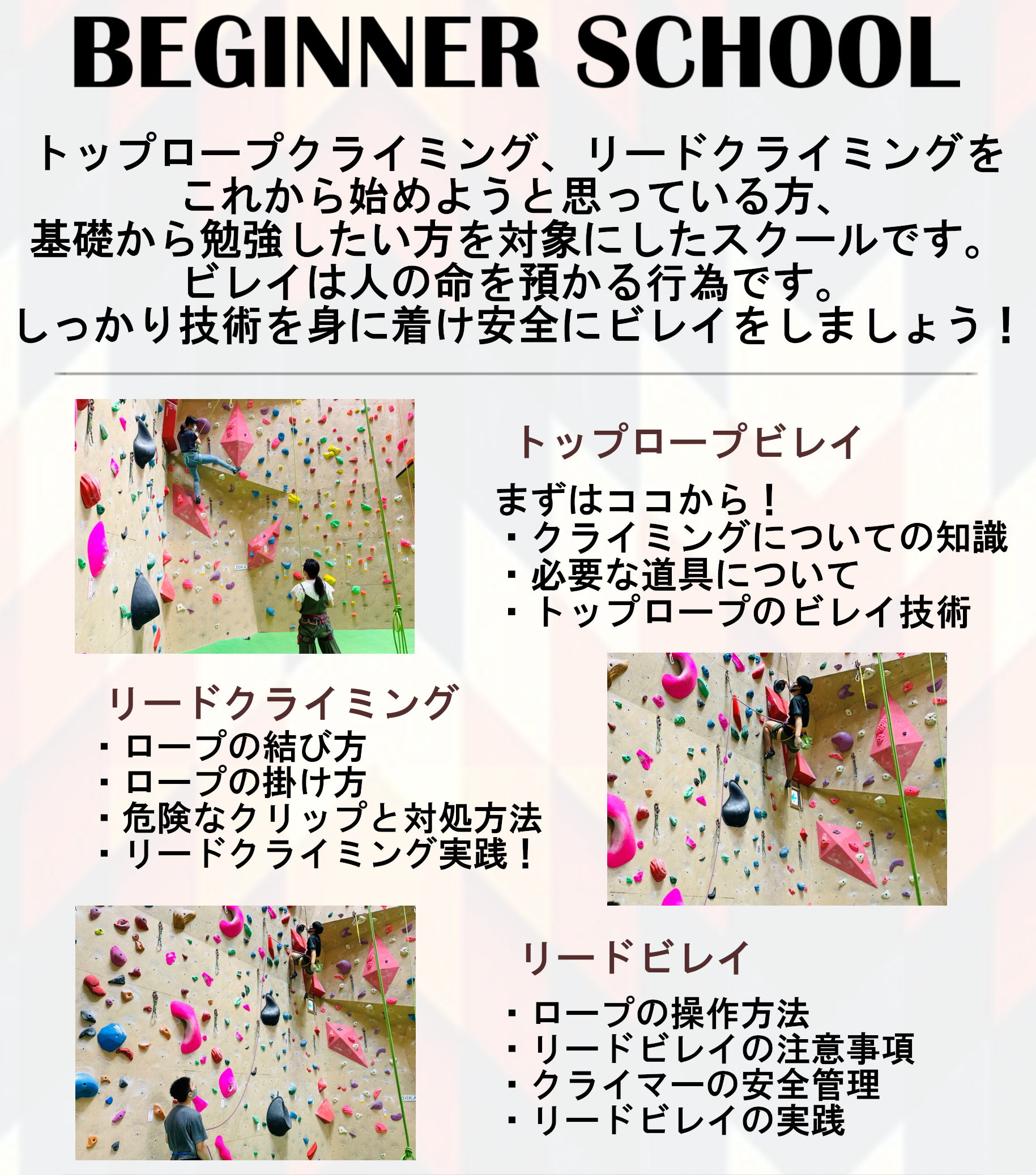 これからクライミングを始めようと考えていた方のスクールにはコレ!!