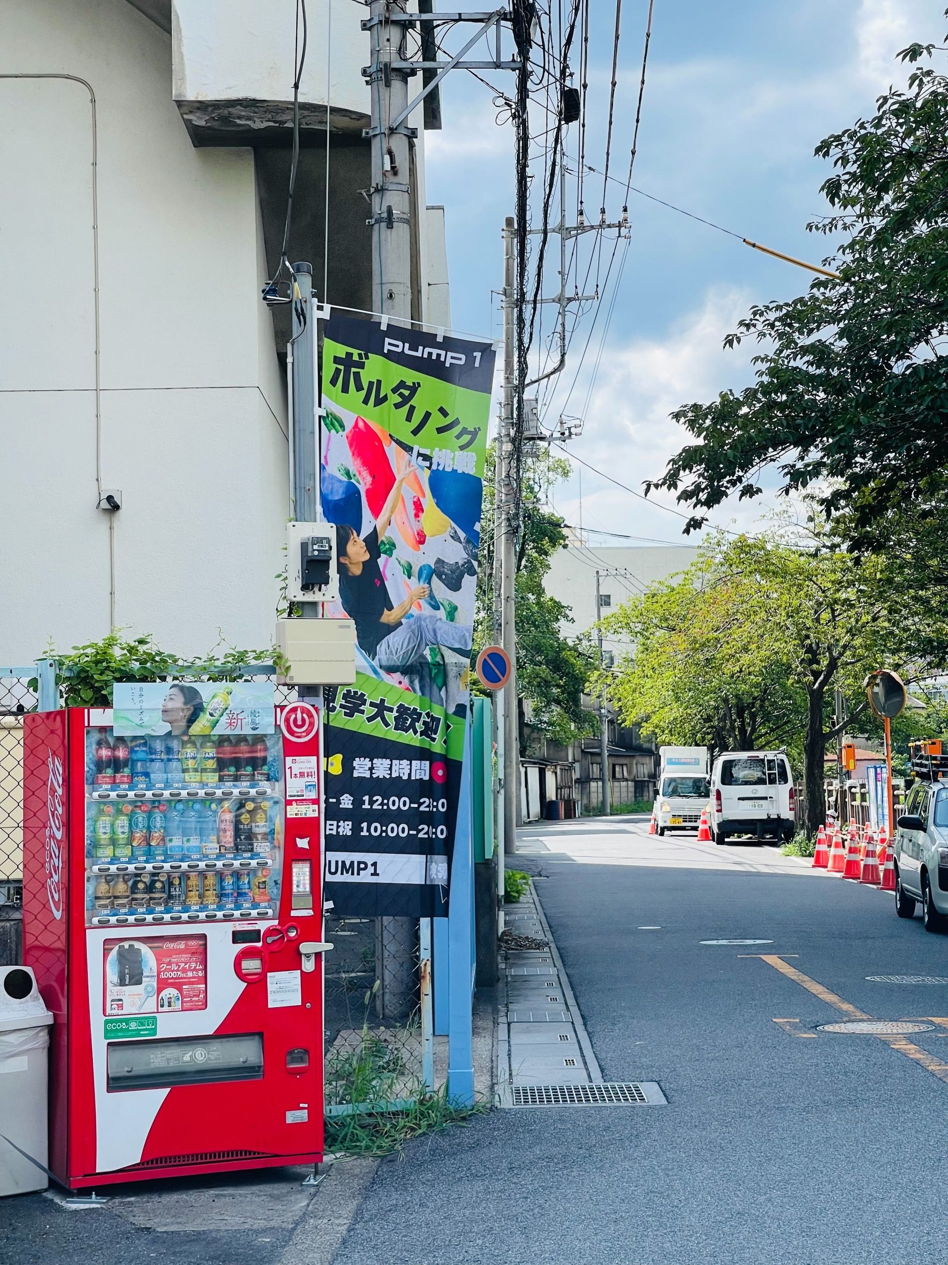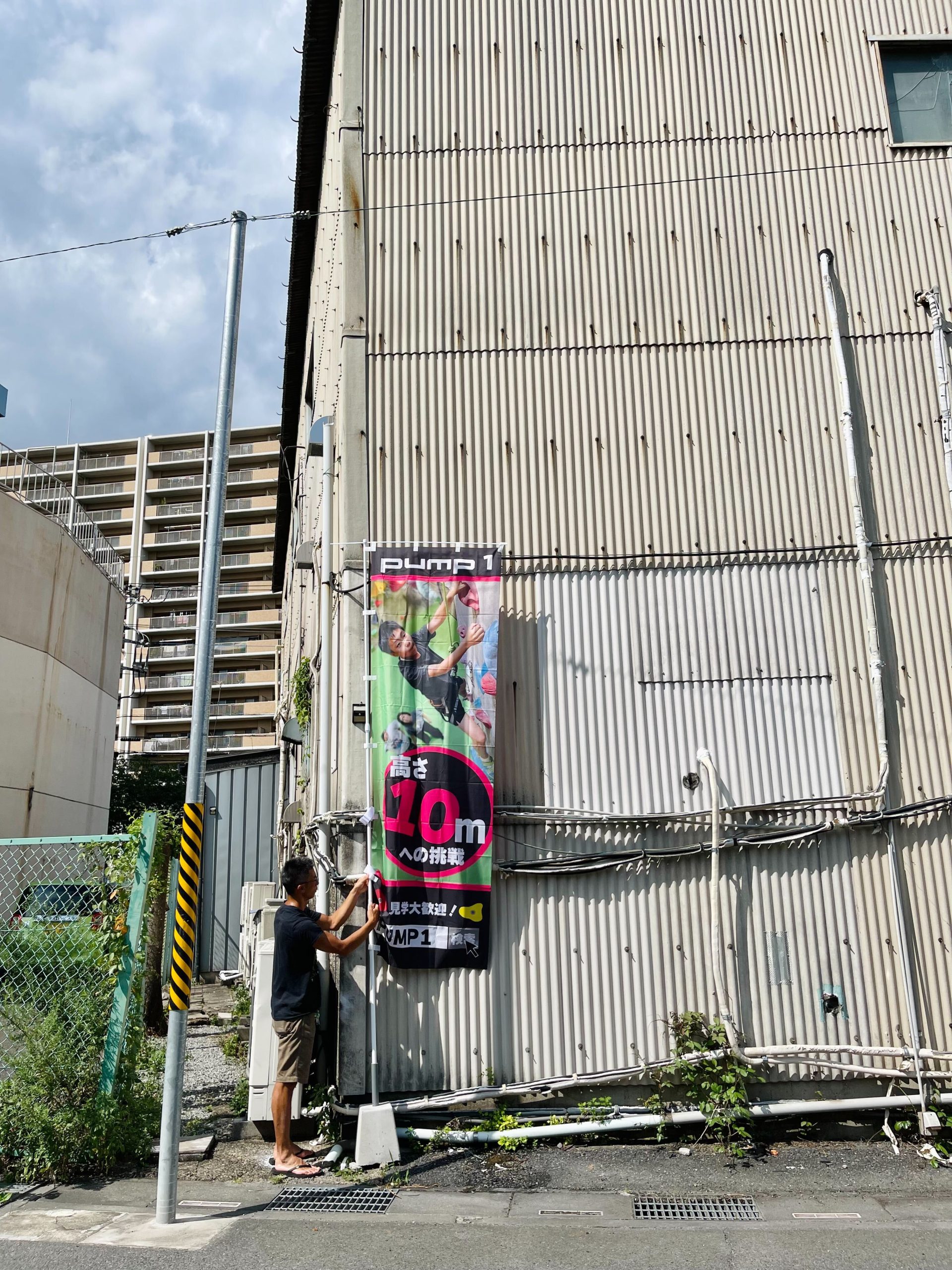 PUMPといえば!の黄緑と黒の組み合わせと鮮やかなホールド達で構成されたこちらののぼりを見て、沢山の方が来店してくださりますように…