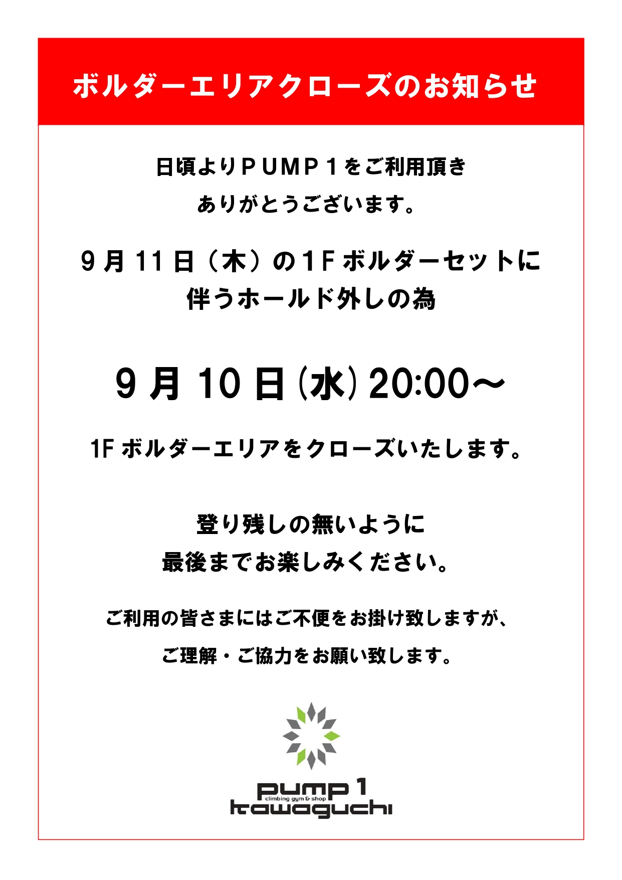 9月11日(木)の1Fボルダセットに伴うホールド外しの為