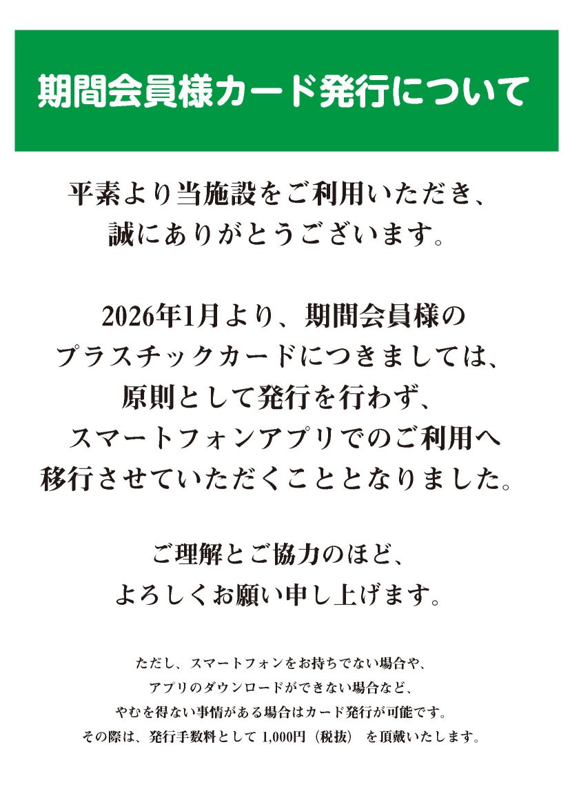 お申し込み、更新時のカード発行に関して下記をご確認ください。