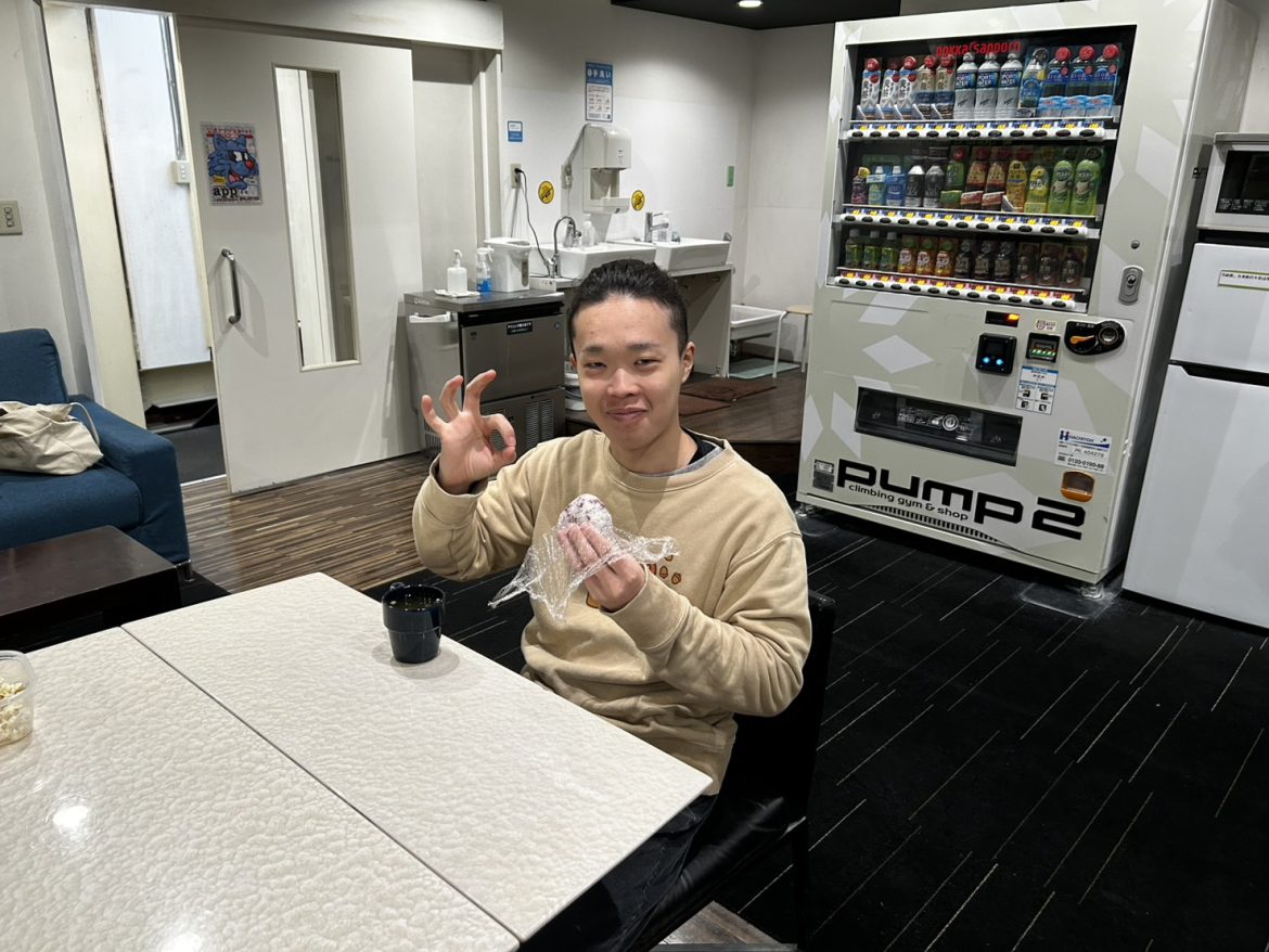 グミやチョコ、プロテインバーなどの軽食を食べたいけど2階に上がるのはちょっとなぁという方は喫煙スペースも飲食可能です。