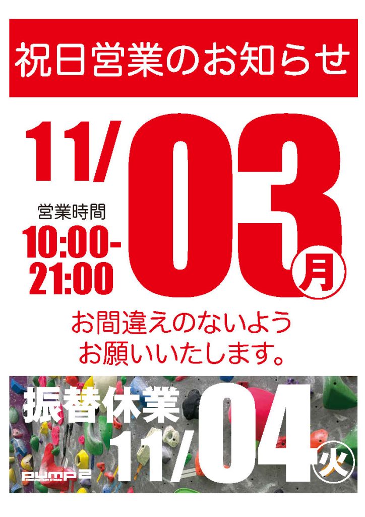 PUMP2 11/4火曜日 90°壁課題変更となります。